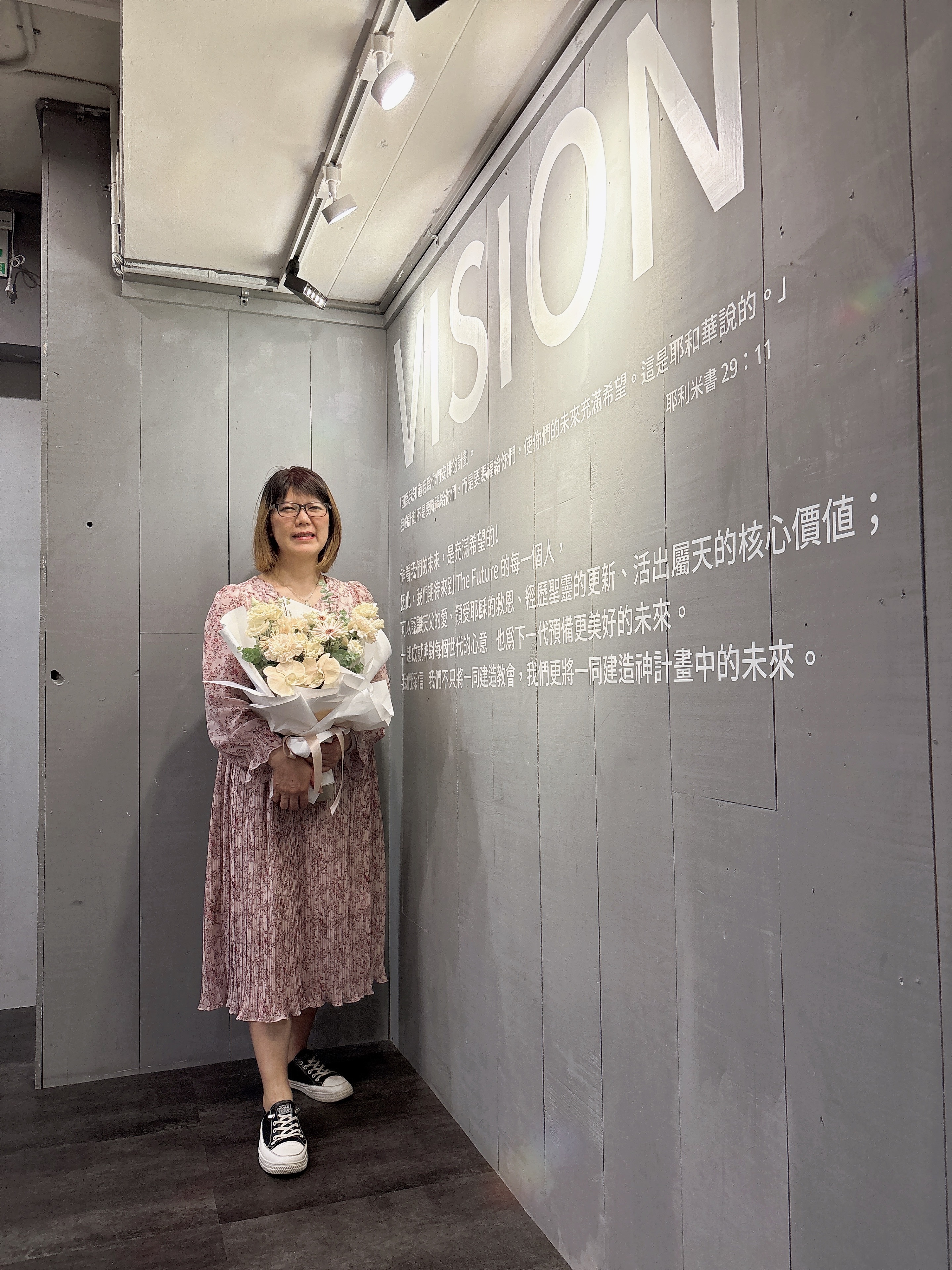 後來參加了教會的聖靈9果粉彩課後,就直接小組、穩定聚會,跑成全系統後來也靠著神帶領男朋友信主,神一步步開路引導,最後決定委身在淡江教會也接受全職事奉、回到主內我感覺非常的平安,時時藉著禱告,將生活的一切大小事或重擔交給祂,因衪領我走在蒙福的道路上,這樣的平安非世人、非世界所能給的,耶和華是我的牧者,是我隨時的幫助與最好的良友!我願一生緊緊跟隨主,為主所用,傳揚主名。