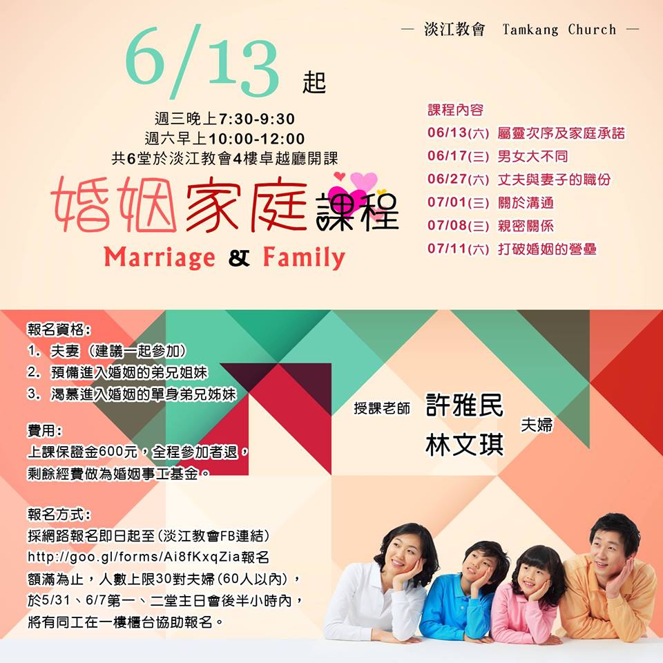◎費用:收保證金600元,全程參加者退,剩餘經費做為婚姻事工基金