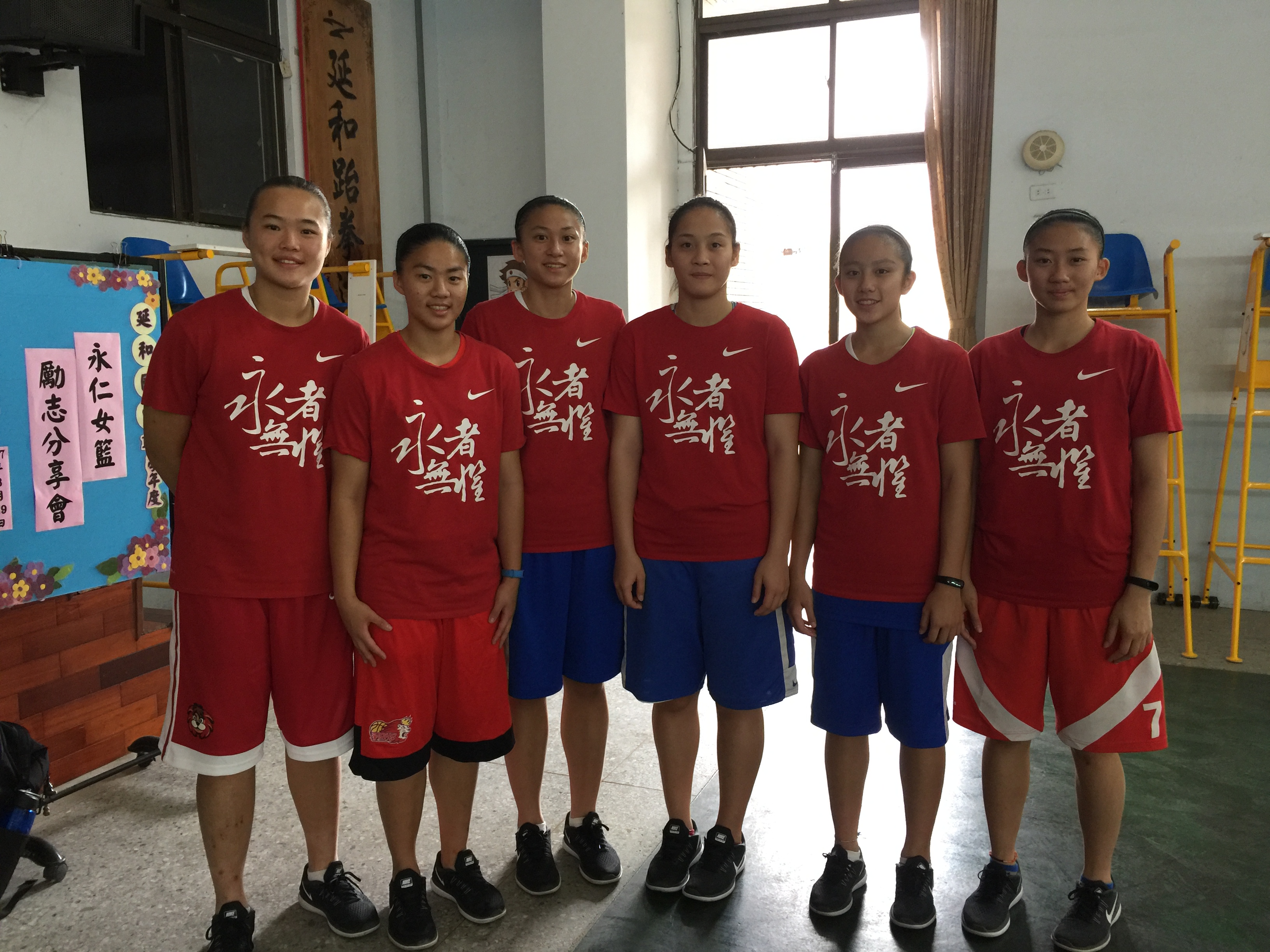 午後的艷陽著實熱情,一進入延和國中校園內,看見有朋自遠方來,不亦樂乎!我們熟悉的好朋友-永仁女籃的石教練、師母及六個可愛的隊員。