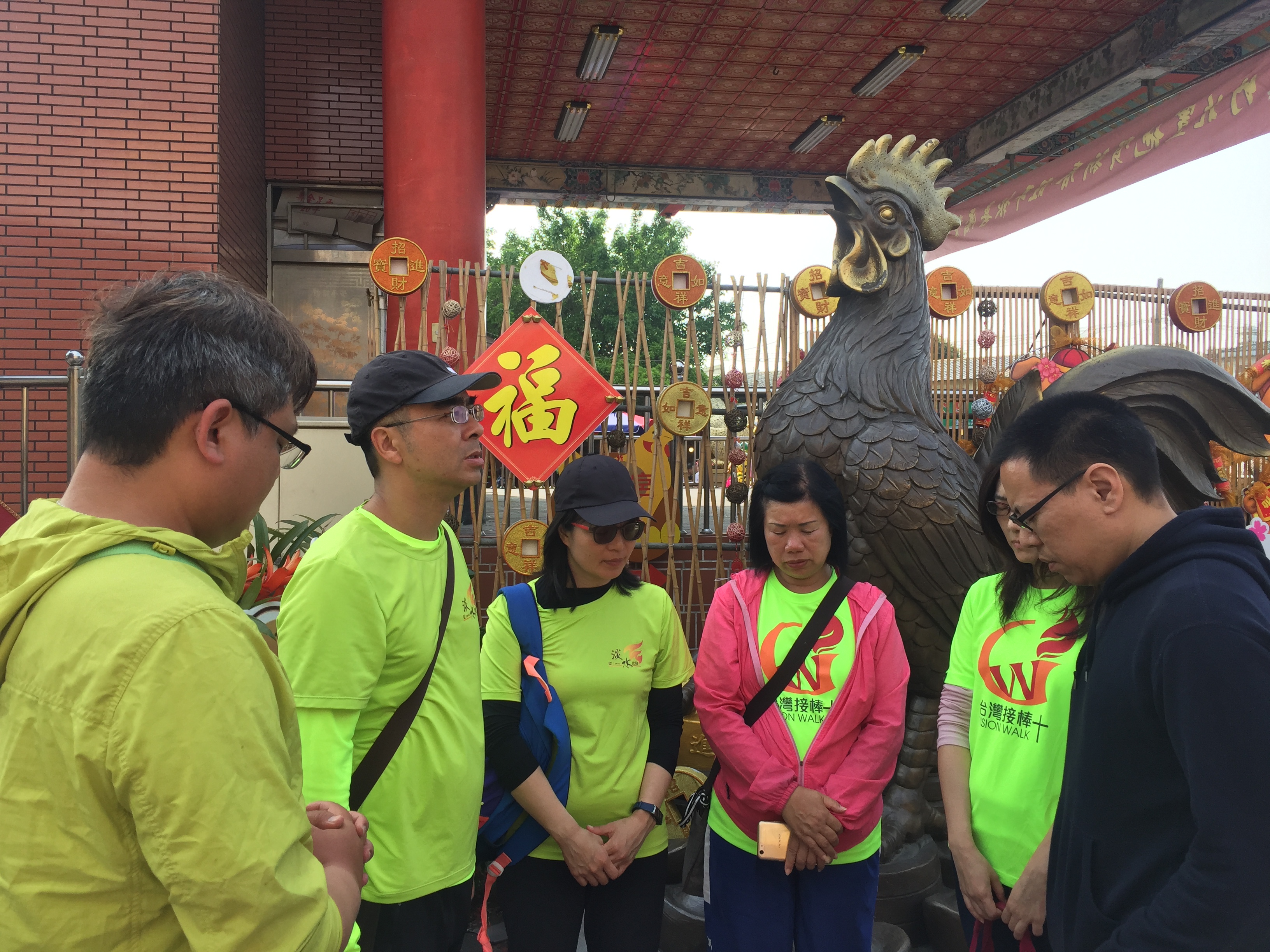 當我們懷著一顆憂傷痛悔的心離開那裡,同伴們分享說,還不認識主以前,他也像那些鑽到金雞下方求財、擲筊求發財金的人一樣,說著一方面感謝主的恩典,一方面也向主認罪悔改,求神幫助我們的同胞,有智慧及夠用的恩典來認識祂,不受到黑暗權勢的綑綁,看見真光。