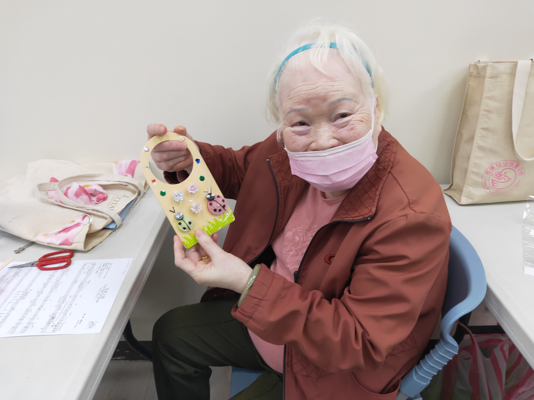 親和力十足的楊啟仁牧師,站在一樓葡萄園迎接我們,看見30幾位年長者,在志工陪同下,正在完成手上的手做,滿眼笑意,看得出他們的滿足與喜樂!免費提供休閒場地及咖啡,盼望能成為教會與宜蘭市民福音的接觸點,福音的媒介,在人來人往中,看出牧師與會友就像一家人一樣,真的好溫馨。