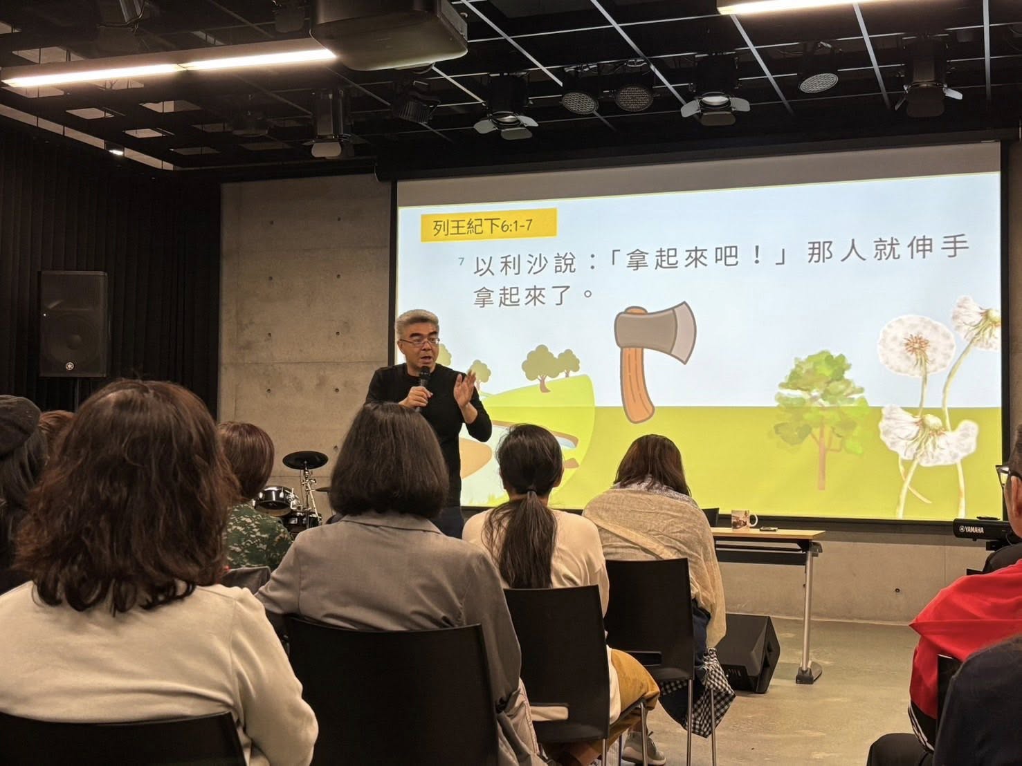 牧師提醒,參與這項事工,勢必面對攔阻與攻擊,如財務、人際或意外等挑戰!他以列王紀下6章1-7節經文:以利沙先知和門徒找回斧頭的故事做比喻,勉勵同工們即使遭遇「哀哉」的時刻,神仍會施行拯救和幫助。牧師勉勵大家,就算面對挑戰或難處也不要放棄,要重新拿起「斧頭」,繼續建造,相信神必帶領我們跨越試煉,擴張信心與對祂的認識,透過建校過程操練我們,使我們成為神國的精兵!
